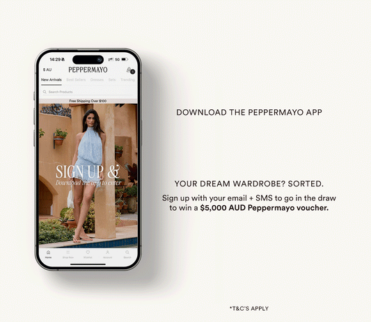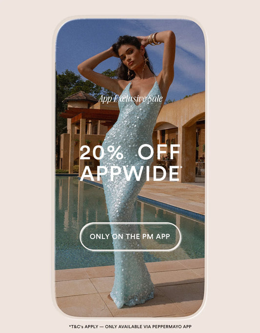 T&C's: The 20% off app promotion is available on all app orders. The promotional code must be entered at the time of checkout to receive the discount. This offer cannot be used in conjunction with any other promotion or discount. The offer may be revoked at anytime at Peppermayo's ultimate discretion. Exclusions apply. Please note, any items purchased at red-penned final sale cannot be returned.