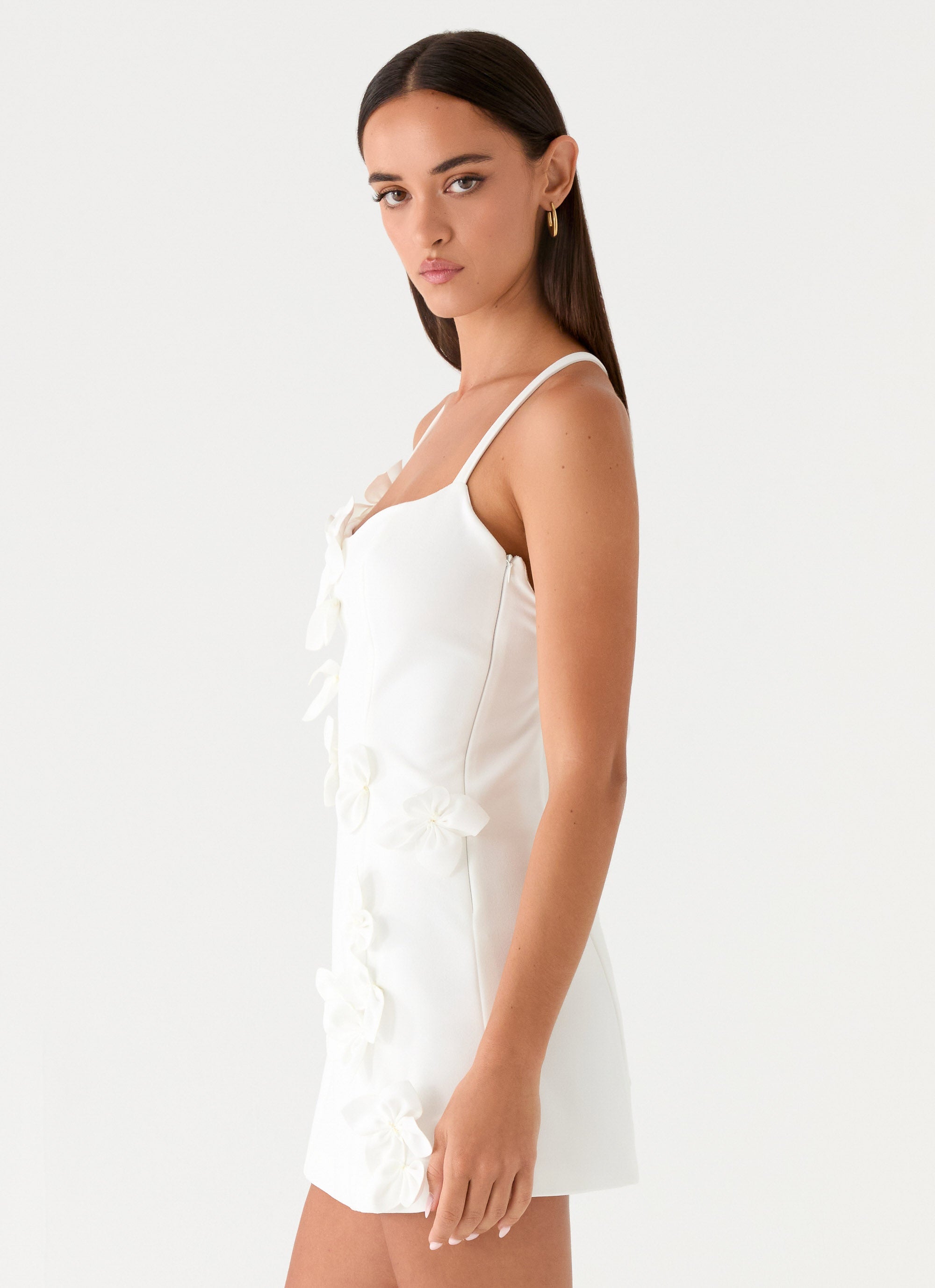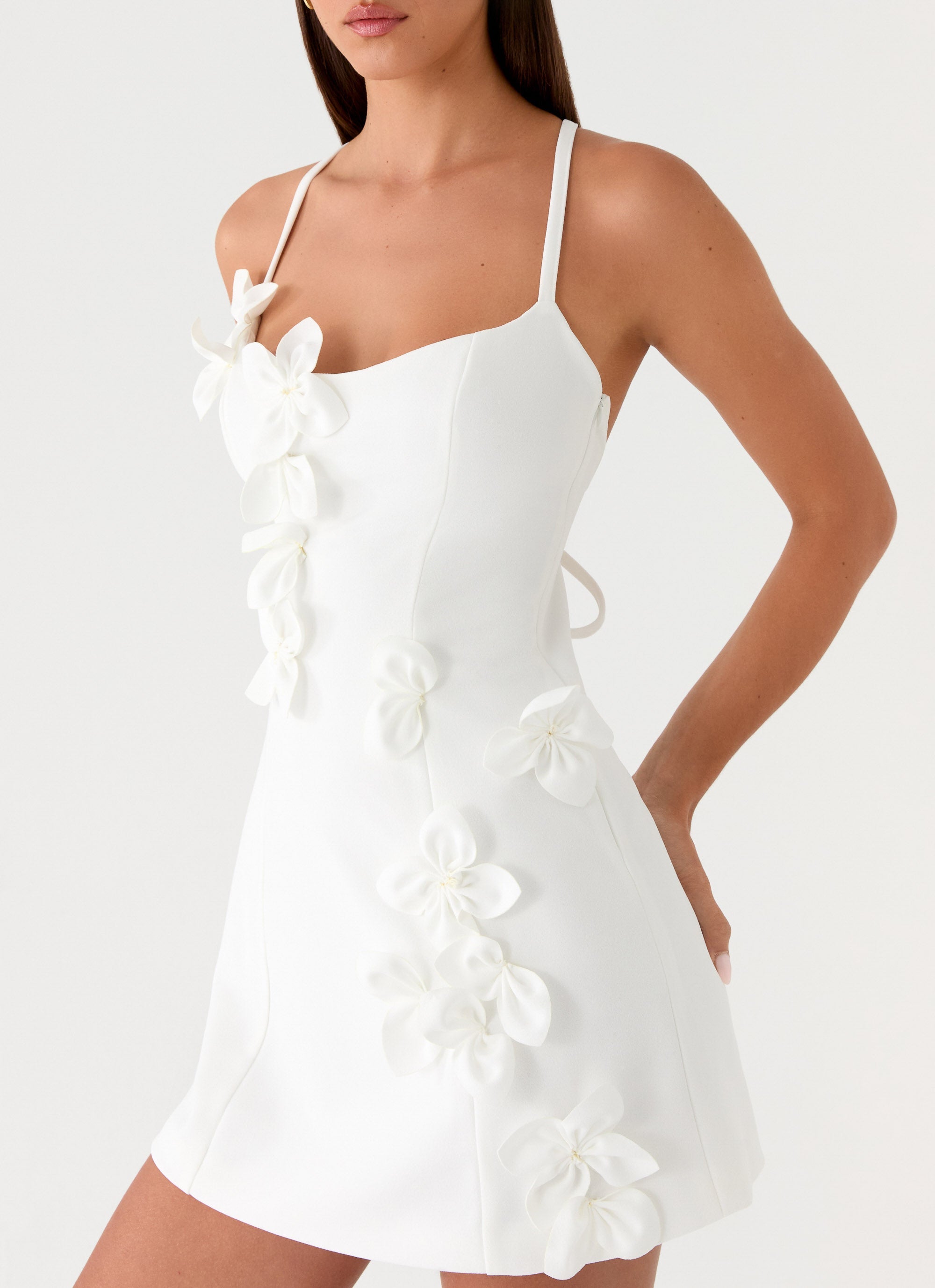 The Avenya Mini Dress is designed for bold, feminine style. Featuring a soft scoop neckline and intricate 3D laser-cut hand-stitched floral detailing, this mini silhouette is fully lined and crafted in premium heavyweight suiting fabric for structure and elegance.