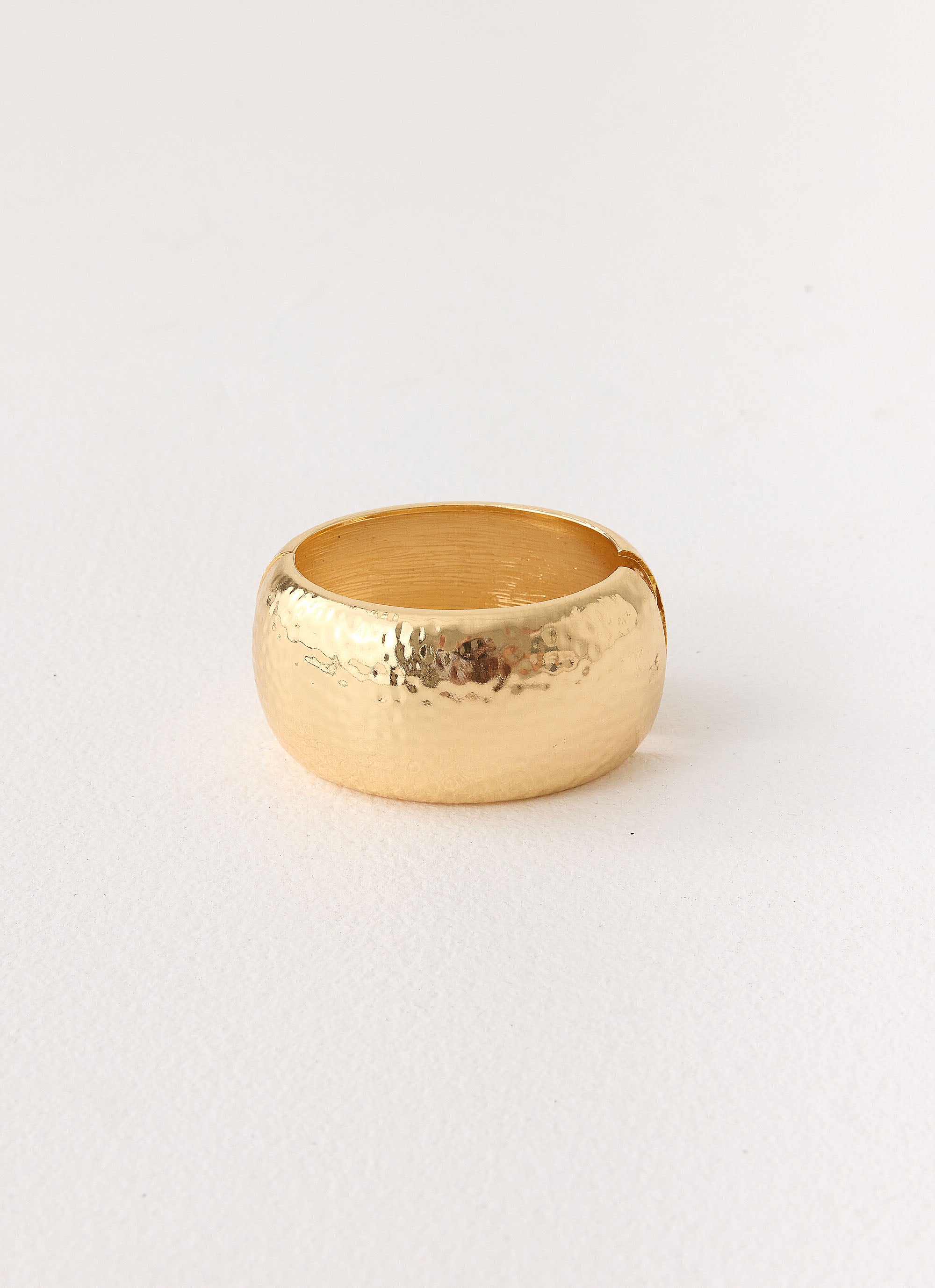The Easy Love Bracelet is made for sun-soaked days that flow into golden hour evenings. Featuring a textured surface and thick bangle design in a gold tone, it adds a bold, editorial edge to your summer look.