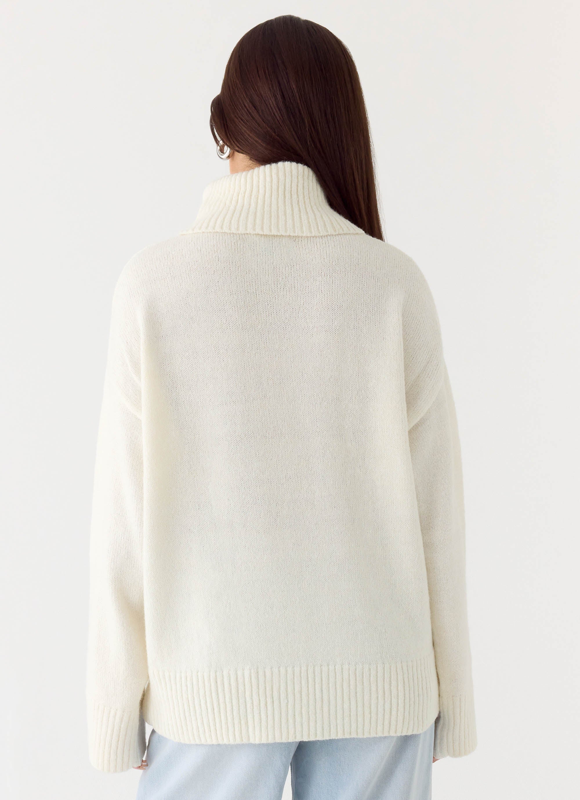 The Gabrielle Knit Sweater is your answer to cool evenings that still call for effortless allure. Featuring an oversized silhouette with a high turtle neckline, this knit drapes softly with a relaxed, drop-shoulder shape. Designed for laid-back luxury, it brings an easy confidence to golden hour strolls and late-night escapes.