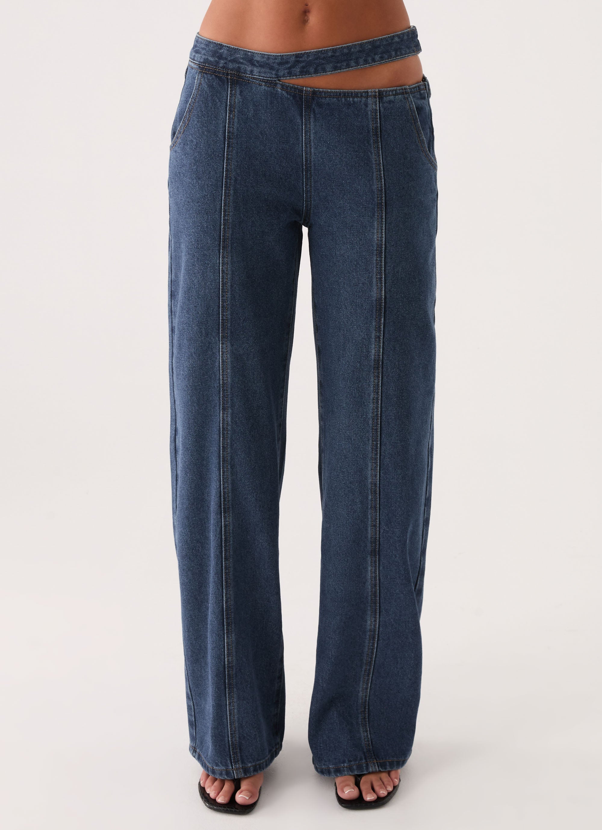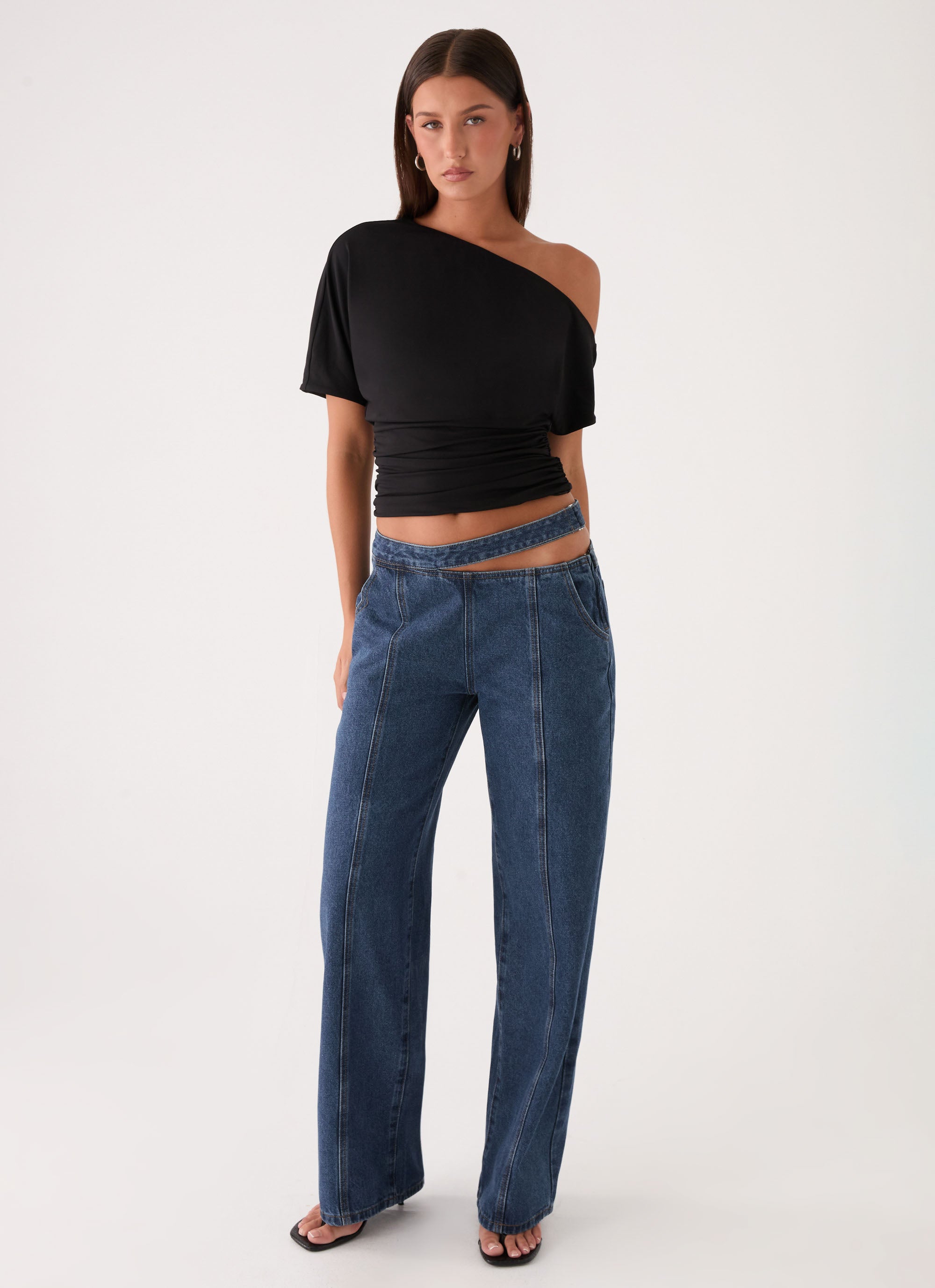 The Hugh Denim Jeans are designed for effortless, everyday style with a modern low-rise silhouette. Featuring a straight fit and waist cut-out, they offer a sleek shape while side slanted and back patch pockets provide practical detailing. Finished with a side metal zipper, these jeans balance edgy design with classic denim appeal.