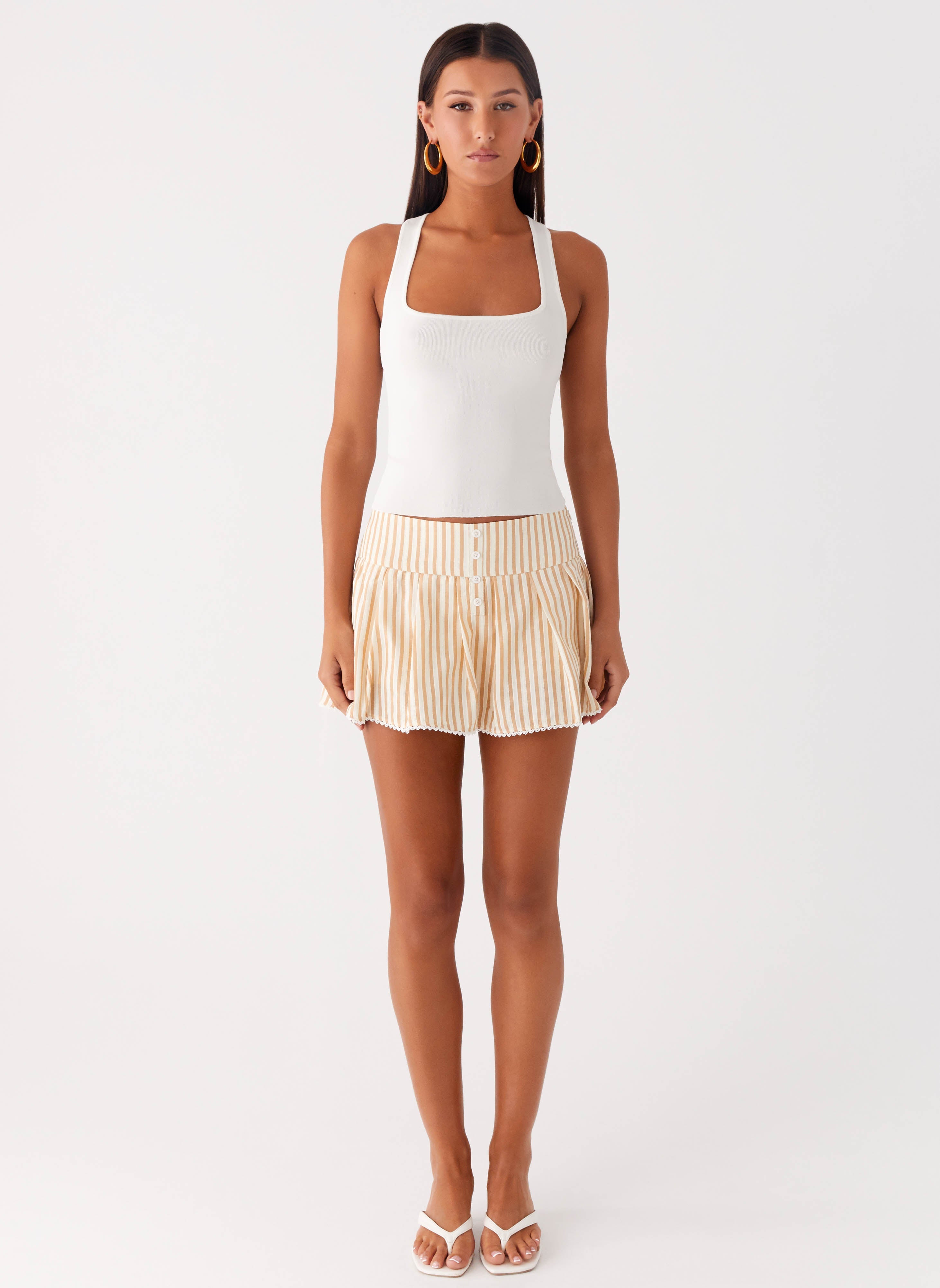 Peppermayo Exclusive - Oliviana Pleated Mini Skort - Taupe Stripe