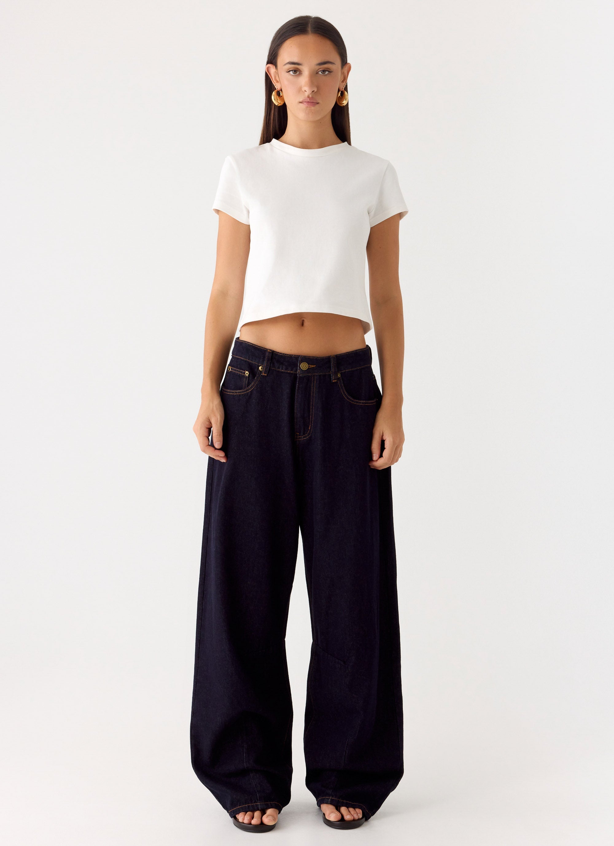 - Low-rise waist